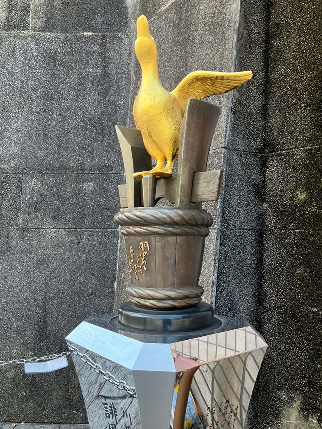 羽を広げた金のアヒルが特徴的だ。また、京成上野駅入り口の壁面にあるルイス・ニシザワ作「風月延年」も、目を引くレリーフで、待ち合わせ場所に適しているだろう。
