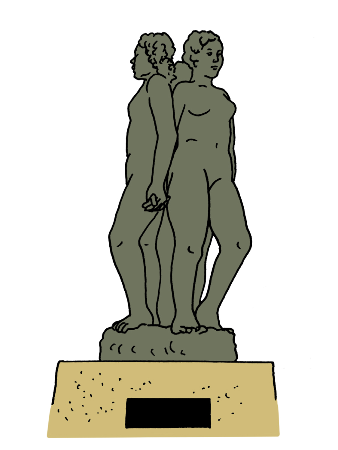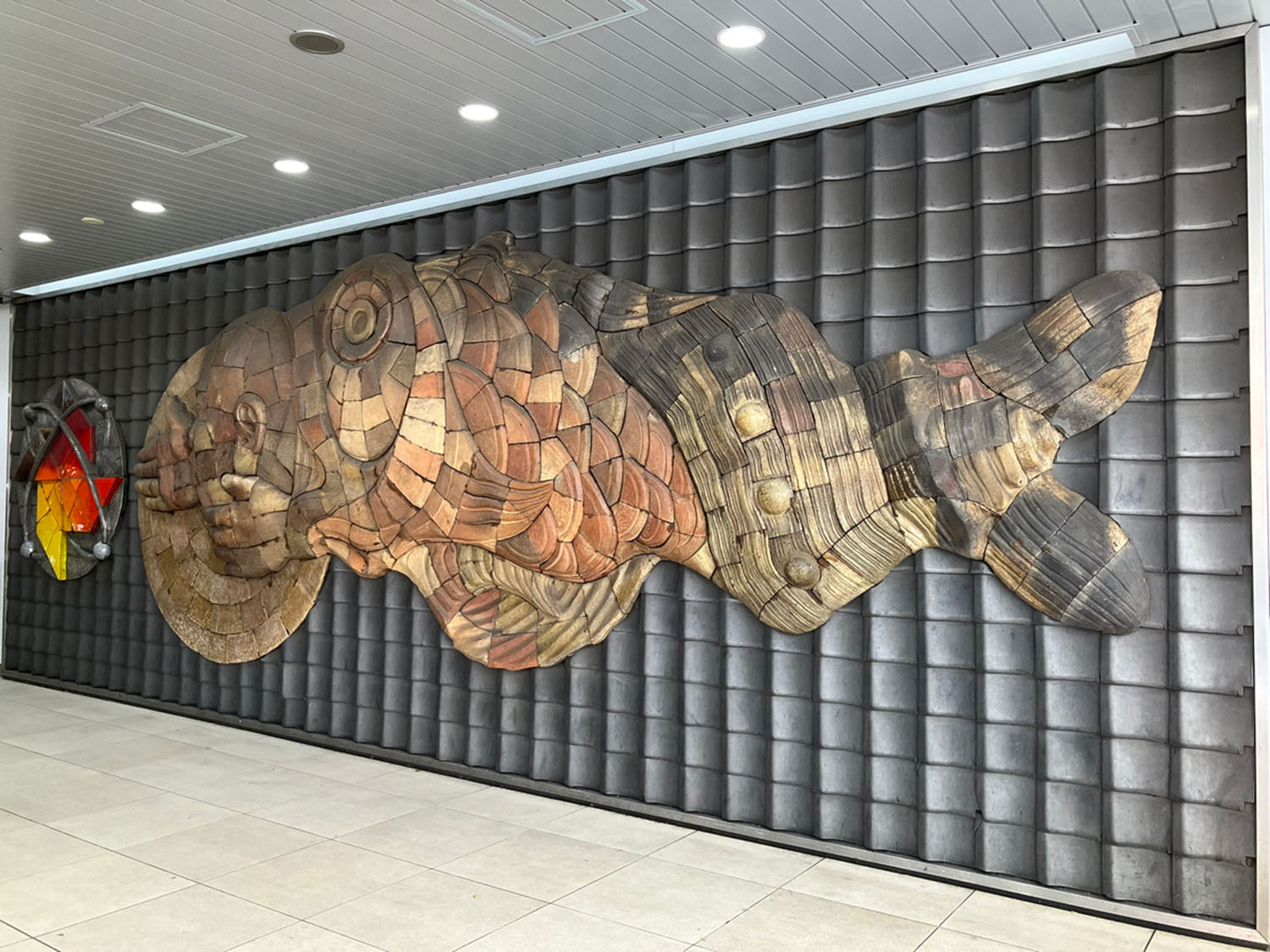 印象的な壁画作品が多く目に入るが、いずれも頭上にあり横に長いので、待ち合わせ場所として最適なのは朝倉文夫作「翼の像」であろう。