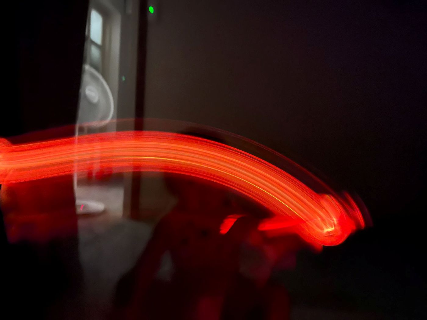 暗闇でスマホ撮影すると光の軌跡が写るのは、iPhoneのナイトモードではシャッターを数秒間開放して光を集めるからなんです。今回やってみたのは、子供のお気に入りの七色ブレスレットを暗闇でぶん回し、iPhoneで撮る実験。軌跡や残像が現れて大爆笑、時に心霊写真のような仕上がりに。