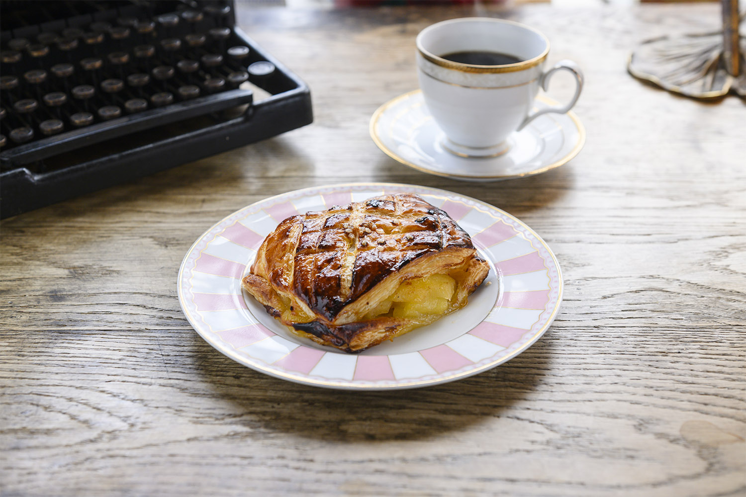 銀座の「ガルリカフェ」(現・銀座みゆき館)から暖簾(のれん)分けされ、1996年、地元で開業した村越良二さん。経年変化で色褪せた内装など、店全体が味のある骨董品に思える。「自分が食べたいから」と大きめサイズに作ったアップルパイは、生地から手作りし、なんと折り込むのも手作業。注文を受けてから焼くので提供まで時間はかかるが、サクッとしたパイの食感や熱と共に伝わるリンゴの味わいがたまらない。事前に「焼いておいて」と電話をする常連もいるそうだが、オーブンから漂う香りにわくわくしながら待つひとときはほかの何にも代えがたい。