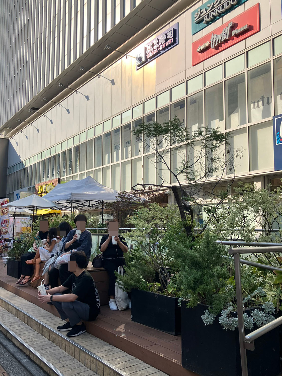 「東急百貨店 吉祥寺店」もまた、入り口横の植栽がベンチの機能も備えていて、買い物客や待ち合わせの人が座って待てるつくりになっている。