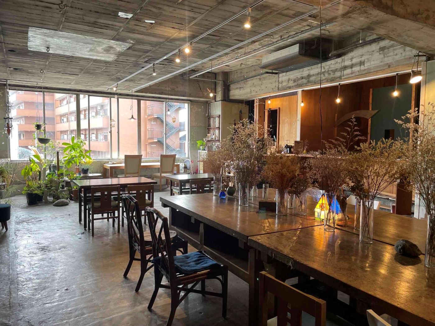 コンクリートがむき出しの廃墟のような店内は、実はボウリング場跡地。2017年、ステージや稽古場、ギャラリーを備えたアート空間『BUoY』として生まれ変わった中の一部だ。だから店員さんも役者や作家などアートに関わる人が日替わりで店に立つ。「コンセプトは“ブレるカフェ”。人によって得意が違うから出すメニューも味も変わったりするんです」と『BUoY』芸術監督の岸本さん。一期一会のブレを楽しみたい。