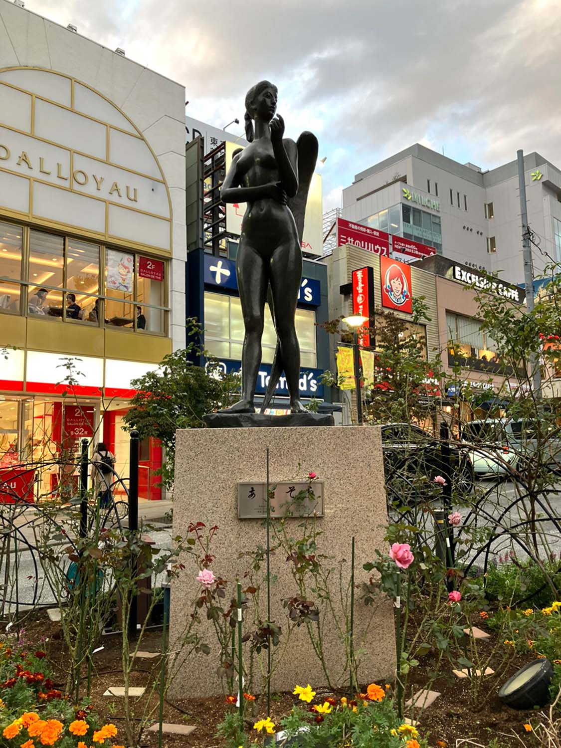 自由が丘と言えば、の女神像。彫刻家・澤田政廣作で、「あをそら」という作品名が付けられている。