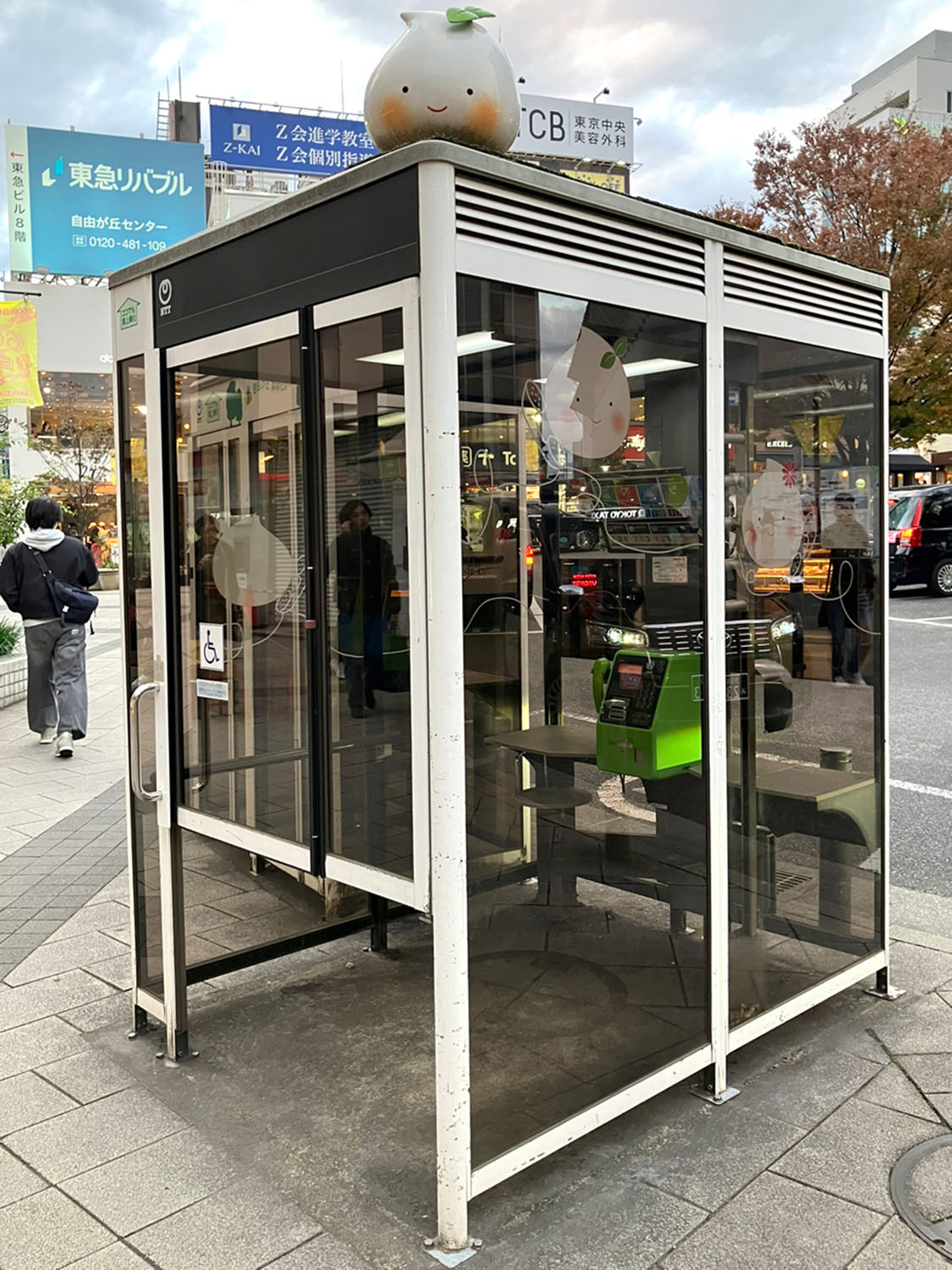 この女神像の近くには、白いおまんじゅうのようなものが載った電話ボックスがある。