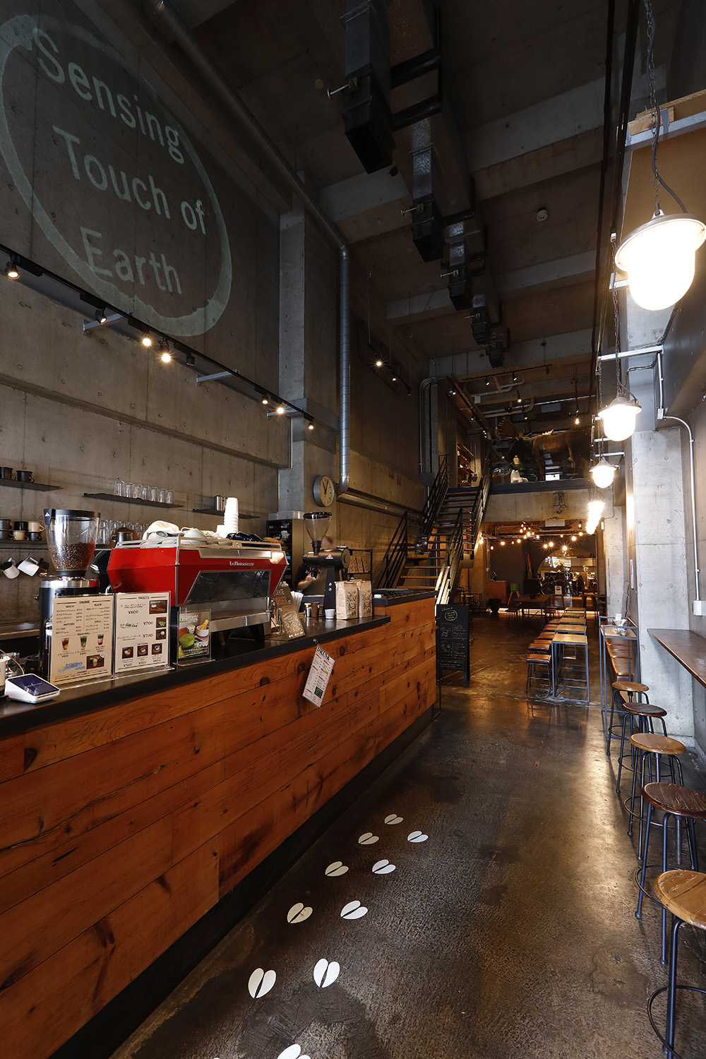 かっぱ橋道具街に2017年開店。地味な料理道具の問屋街にあっては異色で、現在の浅草カフェの先駆的な存在。間口は狭いが内部は広々、天井高く奥行きあるコンクリ打ちっぱなしのスタイリッシュ空間に圧倒される。コーヒーを通して自然に触れるという意味合いの店名に合わせ、巨大なシカ(ぬいぐるみ)やセミが配され、洗練された食器類と合わせてアートセンスが充満、ギャラリーにいるようだ。いち早くスペシャリティ豆でエスプレッソを提供、最近は季節のオリジナルブレンドで作るロングブラック、高級抹茶製のティラミスなどが好評。