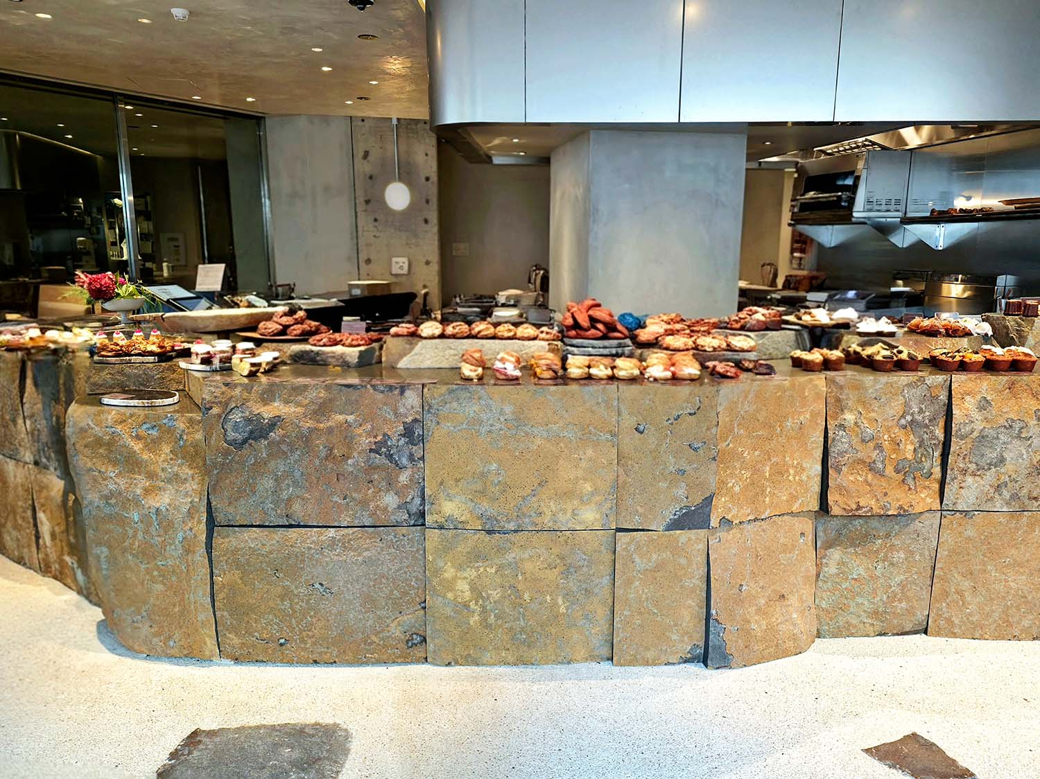 1号店のオープン以来“石の町にある小さなパン屋さん”をコンセプトとするアマムダコタンの世界観を引き継いだ店内。