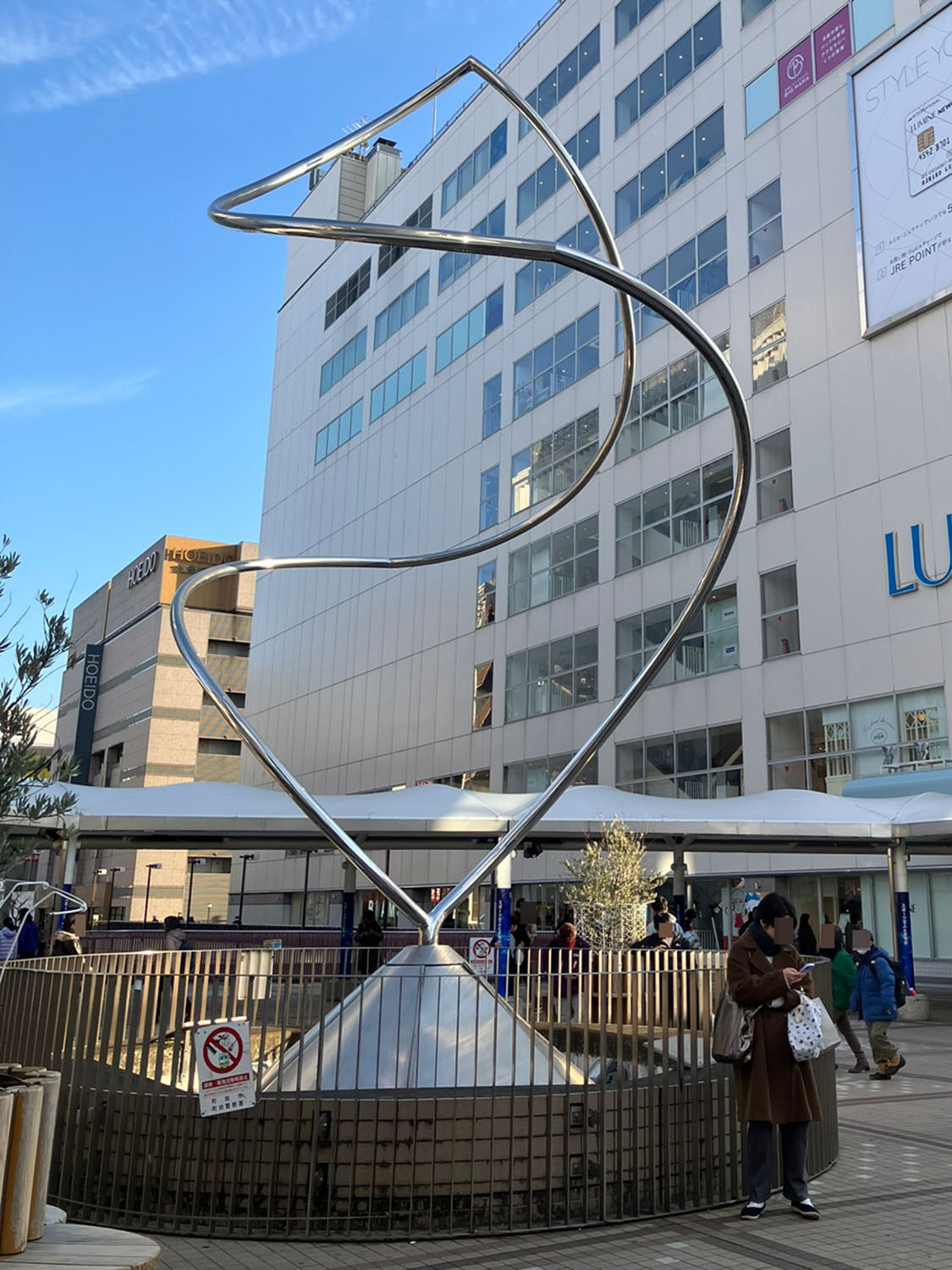 「光る待ち合わせ場所」と言えば、小田急線町田駅も負けていない。北口を出てすぐのところに、金属でできたつぼみ形のオブジェが設置されている。