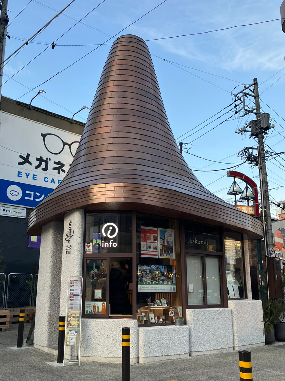 以前は民間交番があった場所に、2025年にオープンした『町田駅前交流拠点 はっとまちだ』で、地域の交流拠点としての役目を担っている。新たな待ち合わせスポットとしても機能しそうな『はっとまちだ』だが、そういえばこの特徴的な屋根も金属(銅葺き)でできている。近隣の商業施設「町田東急ツインズ」のパークアベニュー側敷地にも、北村西望作の銅像「花吹雪」が設置されているので、銅像好きの人はこちらを待ち合わせ場所にするのはどうだろうか。