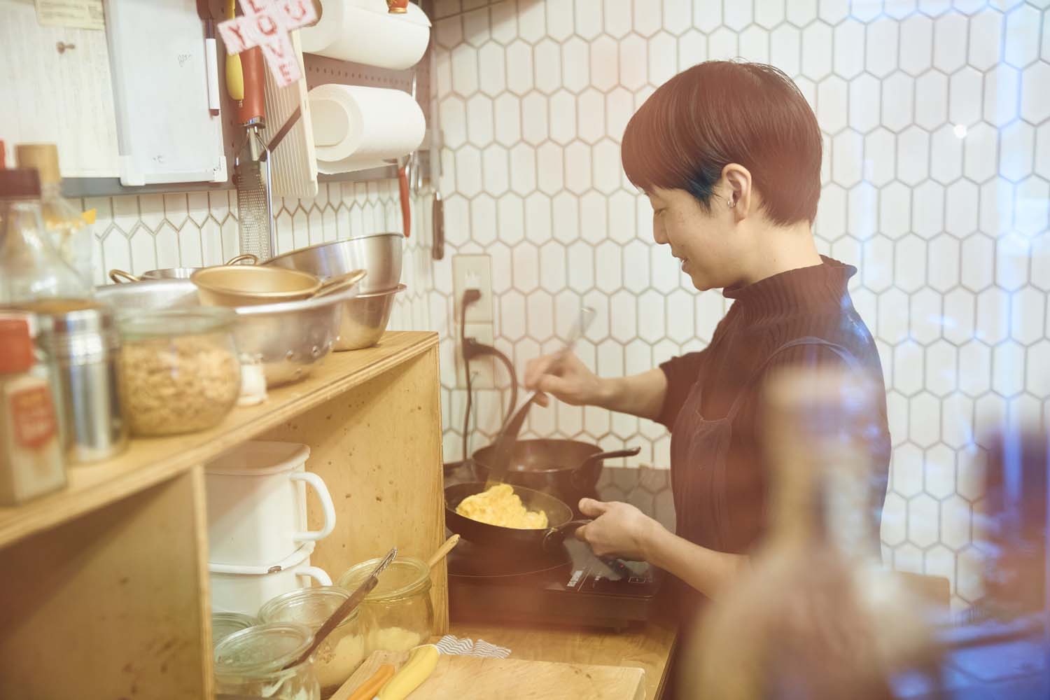 人々の目当ては、店主の山口結さんが注文を受けてから手作りしてくれるサンドイッチ。定番のオムレツとハムは、養鶏所から直送される新鮮な卵を3個も使い、フライパンでオムレツを焼くところから始める。朗らかな黄色の断面を見ただけでたちまち幸せになれるが、「頬張ると温かくて、年中あるけれど冬に特に人気です」。ちなみに、同じく定番のBLTEの「L」はレタスではなく、ケール、ルッコラ、わさび菜など「八百屋さんが自社農園で採れた旬のものから揃えてくれるハーブミックス」。そこで季節を感じられるのも醍醐味(だいごみ)の一つだ。