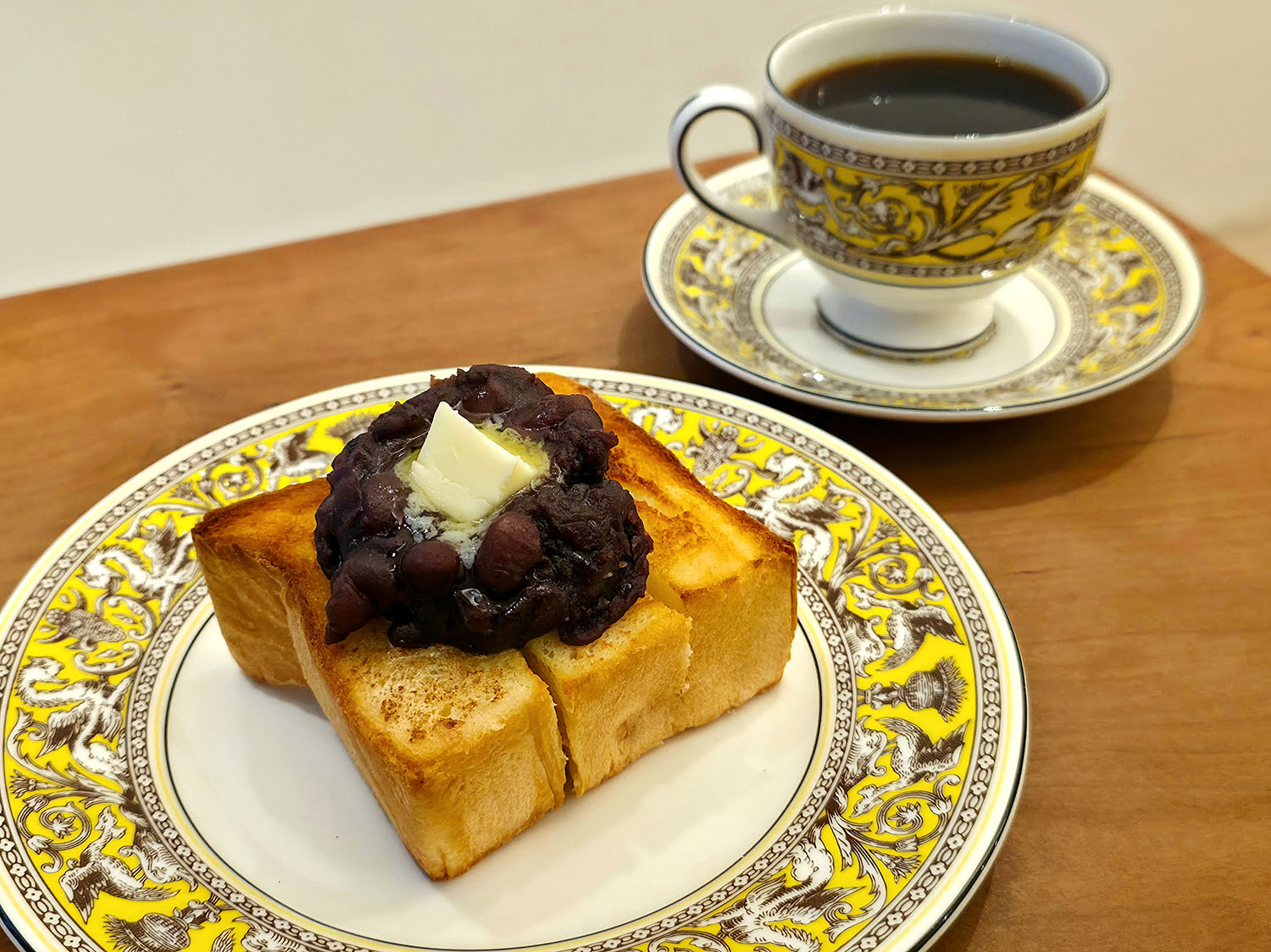 あんバタートーストのお皿も統一されていてテンションMAXひゃっほー!