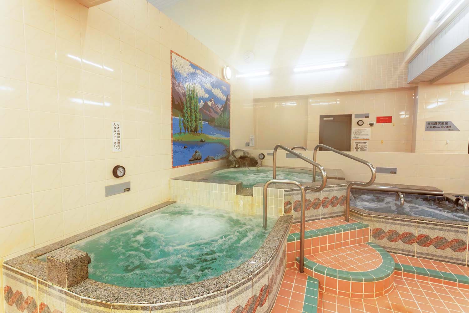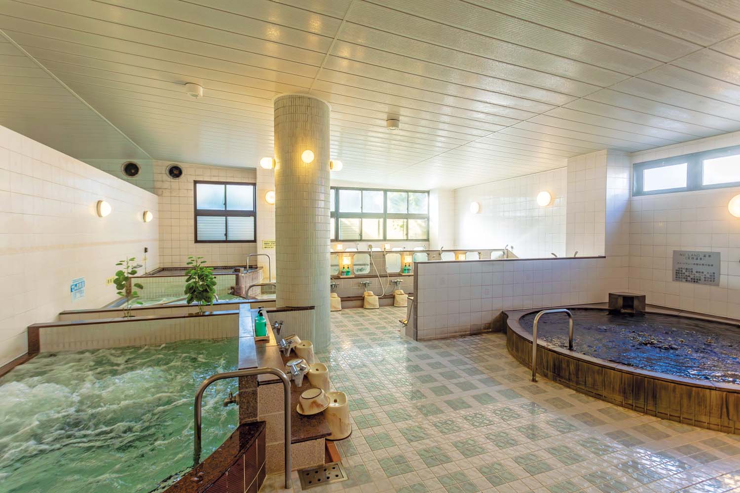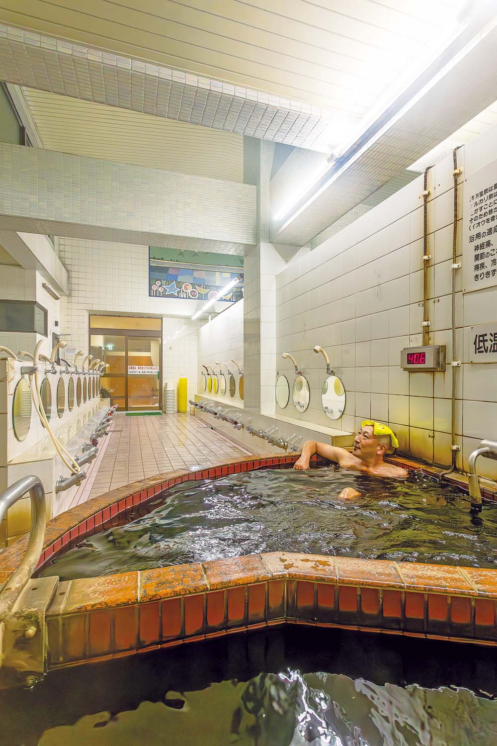 昭和12年(1937)創業の老舗の名物は2つに分かれた黒湯の浴槽。「手前が42℃、奥は45℃くらいで熱々。水風呂と交代浴で楽しむ人も多いよ」と3代目の島邦男さん。サウナも約100℃と“お熱いのがお好き”な人には堪らない。昨秋にはカウンターを新設し、2階の食事処(どころ)をリニューアル。発汗後、蒲田エール1200円を飲(や)るのが最高だ。家業を盛り上げようと、4代目・由紀子さん考案の銭湯グッズも注目!