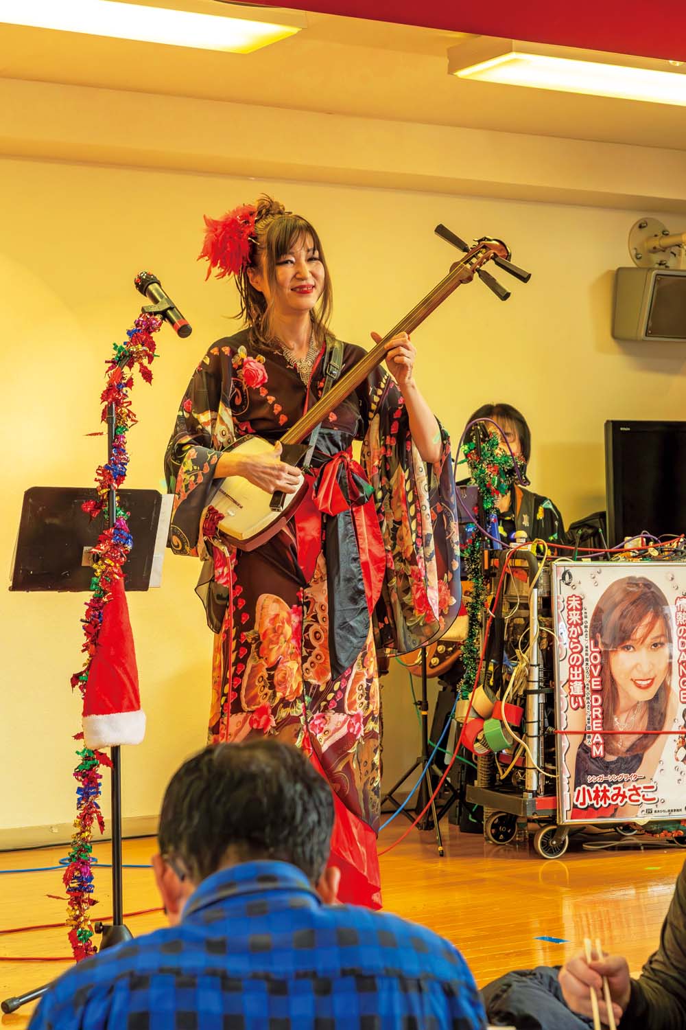 毎週日曜を中心に開催。この日は歌手の小林みさこ&ひろ吉の歌謡ライブが湯上り客を酔わせた。3カ月に1回、お笑いライブも。