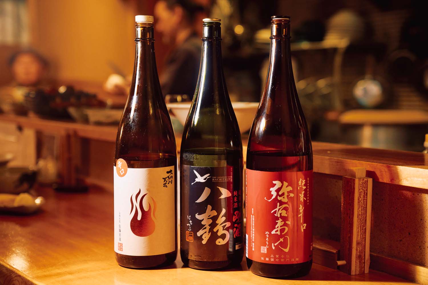 店内はカウンター10席とほどよい広さ。厨房(ちゅうぼう)ではうどんを茹(ゆ)でる羽釜と、おでんの鍋が並んでグツグツ。期待はいやが上にも高まる。小麦の味が豊かな特注のうどんはほどよいコシ。伊吹産いりこ、ウルメイワシ、アゴ、カツオなどで贅沢(ぜいたく)にとった出汁の中で麺がツヤツヤに輝く。うどんと並ぶ名物が、この出汁で炊いたおでん。ダイコン、卵、こんにゃく、厚揚げとオーソドックスなタネながらそのビジュアルはなんと真っ黒。口に含むと意外なほどホッコリ優しい味わいで、二度驚く。季節限定の日本酒とも好相性で、知っておくとかなりうれしい大森の小確幸だ。