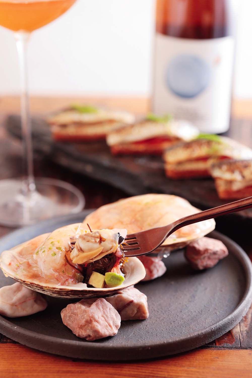 日本料理の手法を取り入れた独創的なスペイン料理を手がけるのは、広尾の割烹料理店で研鑽(けんさん)を積んだオーナーシェフの上田光嗣さん。人気料理ガリシア風タコの鉄板焼は、函館の漁師から直送されたタコを、タコの出汁でゆで、その中で冷ますことで旨味を凝縮。一事が万事。素材へのこだわりも、調理法の追求も、並々ならぬ情熱を感じる。ナチュラルワインはスペインに特化し常時120種類以上。