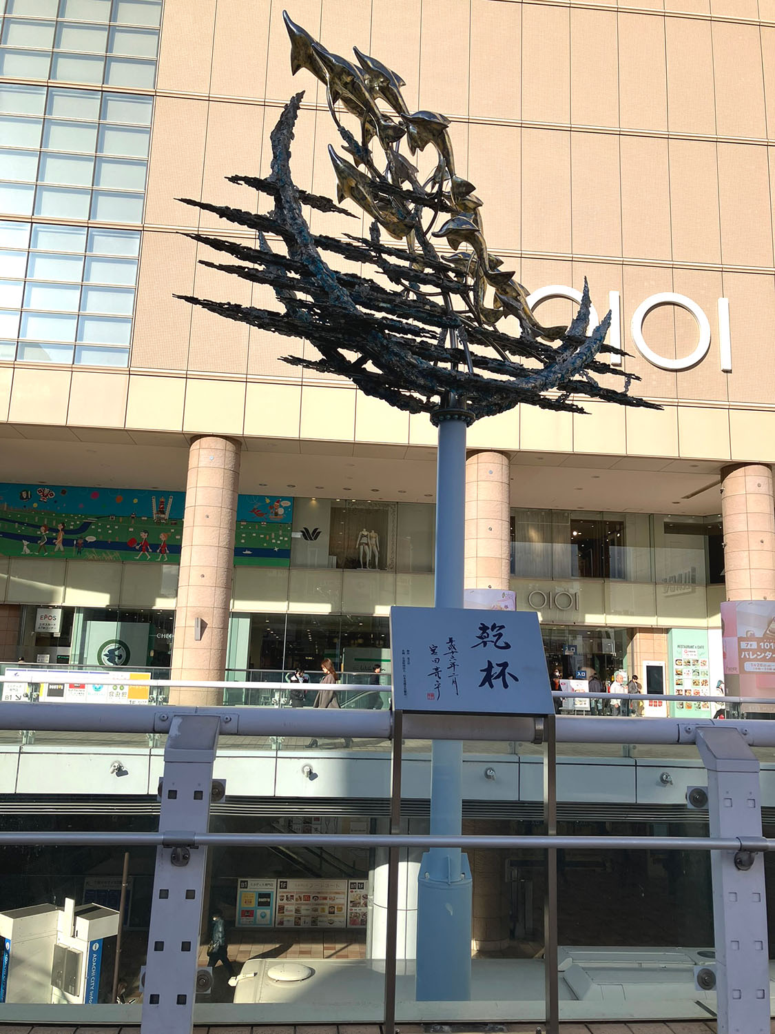 乾杯/わんさ君とJUJUちゃんの像【西口】
