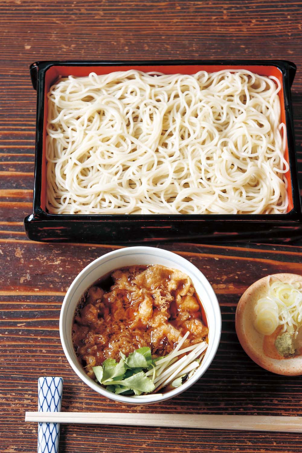 江戸末期に創業し、明治2年(1869)に日本橋に移転。ソバの実の芯だけを碾(ひ)いた更科粉を玉子でつないだ“ざる”は、ほんのりとしたそばの甘みが感じられる。一方“もり”は、ソバの実をまるごと使った碾きぐるみ粉を合わせることで、個性豊かな味わいが引き立つ。天ざる、天もりが発祥した店としても知られているため、ぜひ、そばつゆに浸った天ぷらとそばの絶妙な相性をじっくり味わいたい。