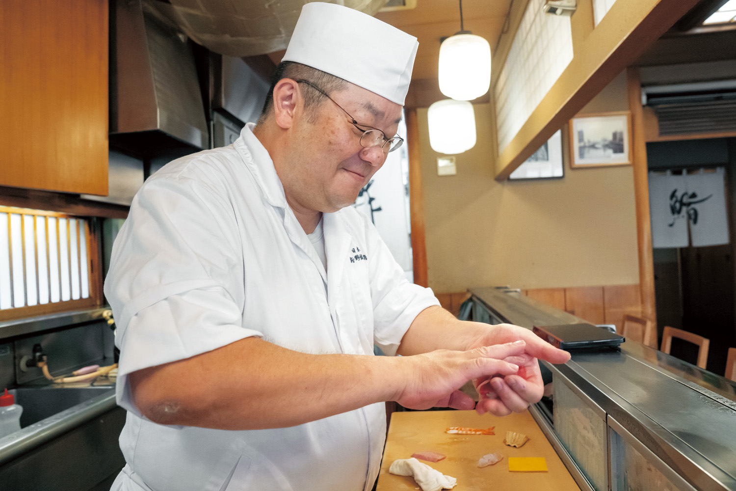 屋台からはじまり140余年、江戸前寿司の伝統を守り続ける。かつて冷蔵・輸送の技術がつたなかったころに編み出された“酢締め”や“煮付け”の技を、現在では素材をよりおいしくするための技術として生かしている。シャリは赤酢と塩のみのキリッとした味わい。「好きなものを好きなだけ食べて」と大将の𠮷野正敏さん。老舗の寿司店ながら、ハードルの高さをあまり感じないおおらかさがある。