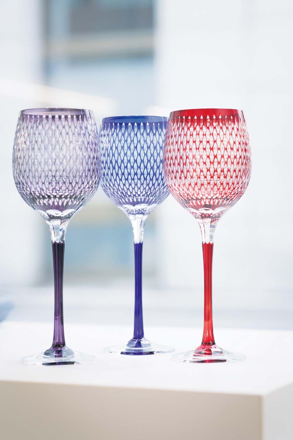 江戸時代、日本橋大伝馬町のビードロ屋・加賀屋久兵衛がガラスに模様を施したことからはじまった江戸切子。『華硝』は戦後、亀戸で創業し、2016年に江戸切子発祥の地・日本橋に専門店をオープンさせた。伝統紋様はもちろん、“米つなぎ”や“玉市松”といった独自の紋様を生み出すなど、技術と芸術性は国内外でも高く評価され、ルーヴル美術館での展示や、サミットの贈呈品にも採用されている。