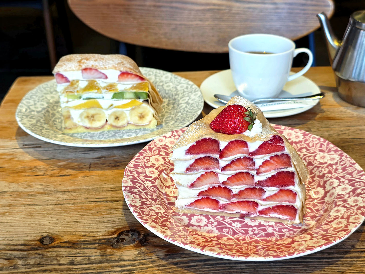 どちらも、フルーツ、クリーム、一枚一枚丁寧に焼き上げたクレープ生地が三位一体となって、ビジュアルだけでなく味わいも大満足のおいしさです。