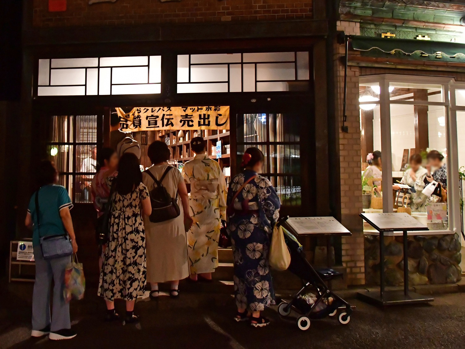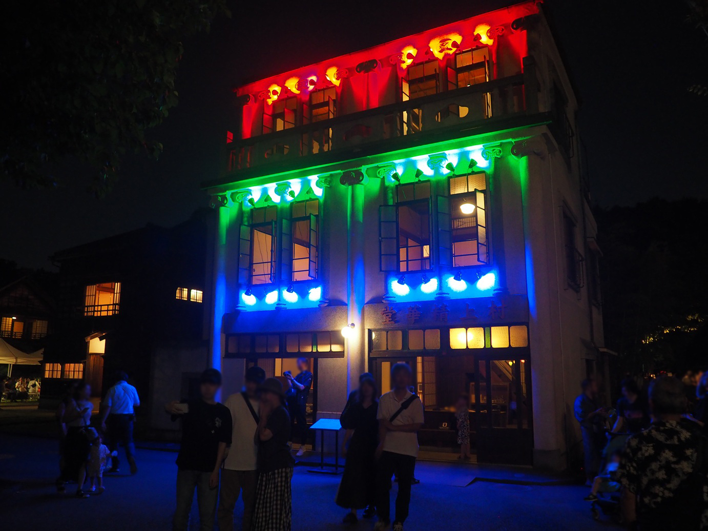東ゾーンの「下町中通り」に立つ復元建造物の商店では、提灯や建物のあかりが灯り、西ゾーンの伝統的な日本の民家では、夕暮れ時の心地よい風を感じながら過ごすことができる。