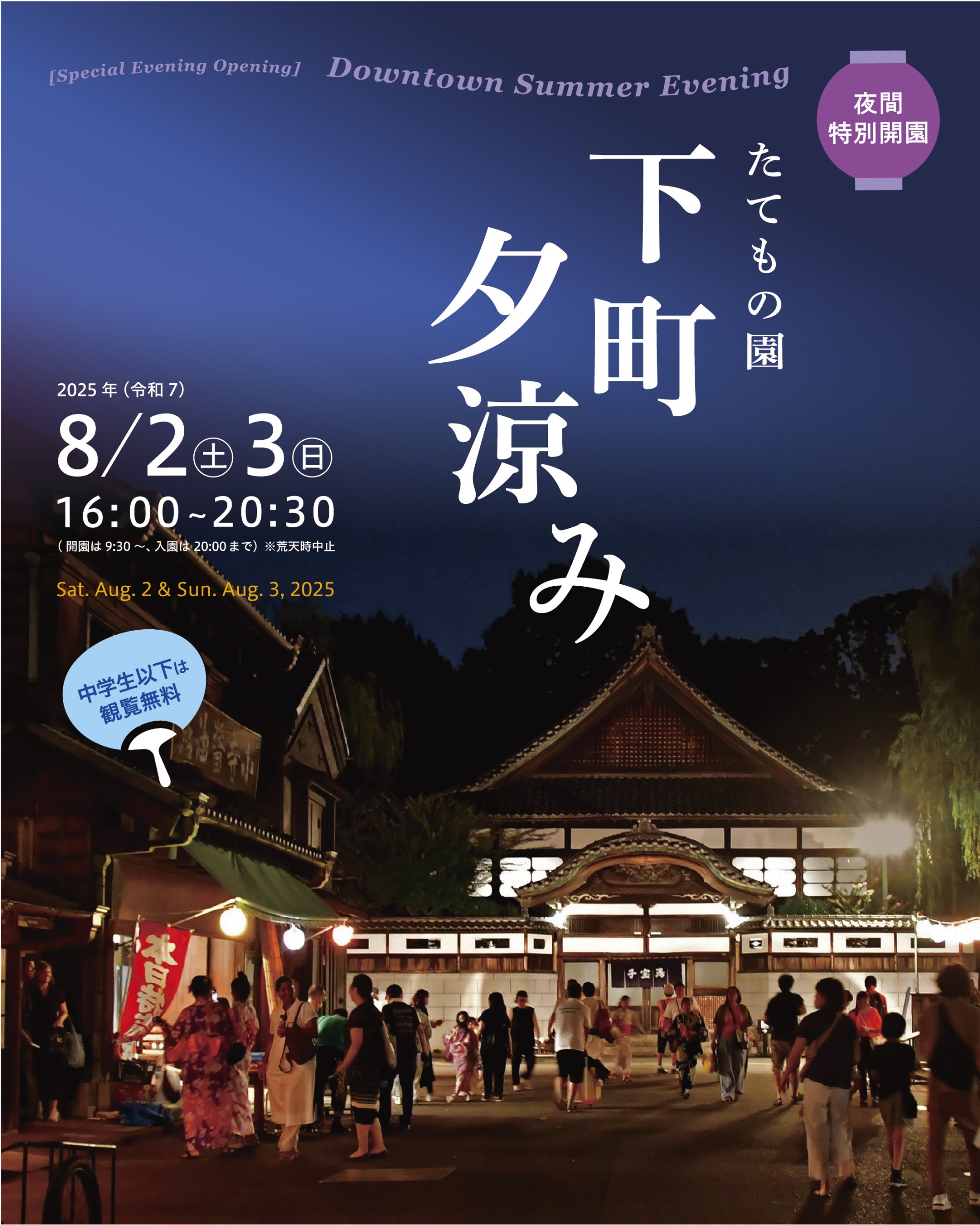 開園時間を延長し、風情あふれる復元建造物が並ぶ園内で、涼やかに夏の夕べを過ごすことができるイベント「下町夕涼み」が開催される。