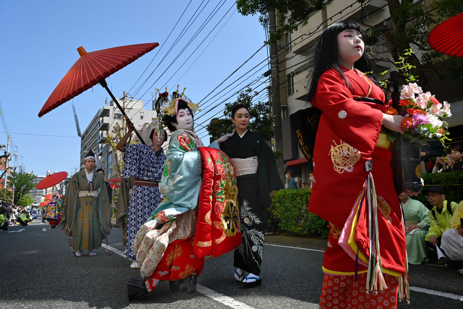 「上臈道中」は、壇之浦の戦いで生きながらえた平家の女官たちが、安徳天皇を偲(しの)び命日に身を清め御陵に参拝したことが起源とされ、下関市では毎年5月3日の「しものせき海峡まつり」に合わせ赤間神宮の「先帝祭」神事として行われている。
