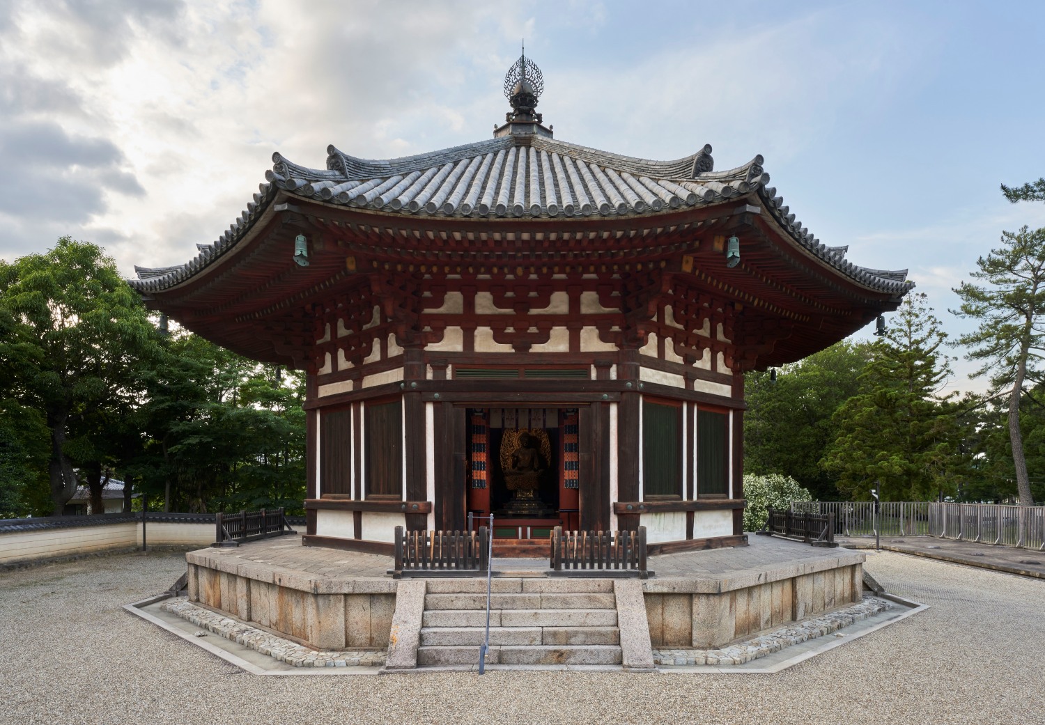 八角形の円堂である北円堂の内陣には同じ八角形の須弥壇(しゅみだん)があり、本尊・弥勒如来坐像をはじめとする9軀の仏像が安置されている。奈良時代の建築の特徴を残した和様建築の傑作とされ、日本に現存する八角円堂で最も優美な建築と賞賛されている。
