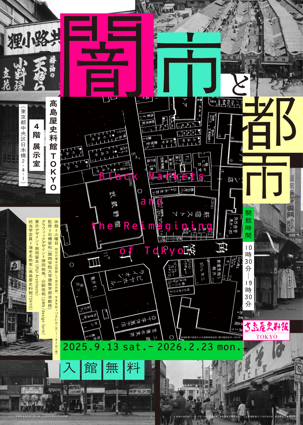 9月13日(土)14時~、本展監修・関西学院大学建築学部准教授の石榑督和氏を講師に迎え、「闇市と都市」展 オープン記念トークが『高島屋史料館TOKYO』5階旧貴賓室にて開催。副題「Black Markets and the Reimagining of Tokyo」に込めた都市の再定義、あるいは都市⾵景の再構築について語る。