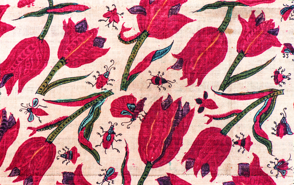 色鮮やかで上質な木綿布の子供用の帽子や、オランダ向けに生産されたと考えられるチューリップと虫が描かれた印象的なデザインなど、さまざまなインド更紗から、その奥深い魅力が伝わる内容になっている。