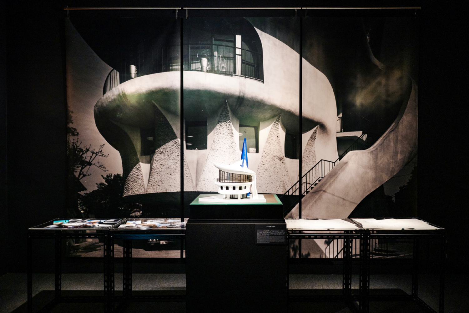 本展では、新たに製作した1/40スケールの『マミ会館』をはじめ、太郎と空間とのかかわりを証言する多彩な作品や資料が展示され、岡本太郎がデザインしたさまざまな作品とともに展示室を彩る。