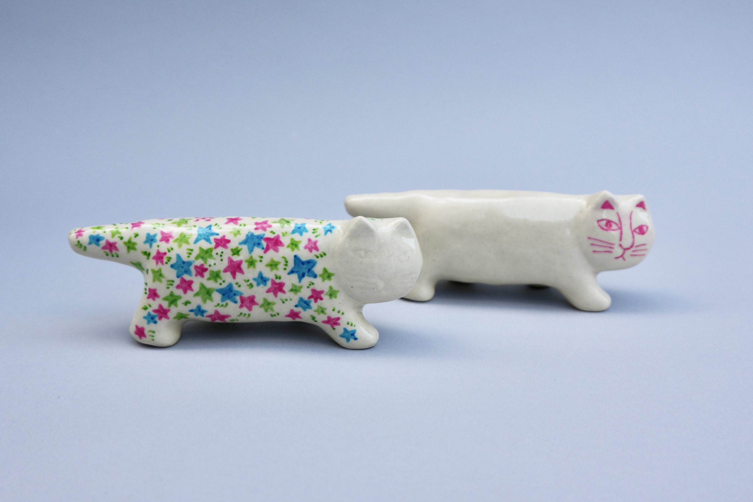 展覧会は第1部「見る」「知る」のセクション、第2部「作る」のセクション、第3部「リサ・ラーソンのゆくえ」の3部に分けて構成。第1部では、リサのスケッチや作品、実際にスウェーデンで使われていた道具類が展示されるほか、リサが原型をつくって職人たちが量産する陶器の工程が紹介される。粘土から形が生み出された原型を元に、職人たちが型を作り、素焼き、絵付けをして完成へ。リサの頭の中のアイデアが協同する多くの人の手を通じて発展し、広がっていく工程がつぶさに見てとれる。