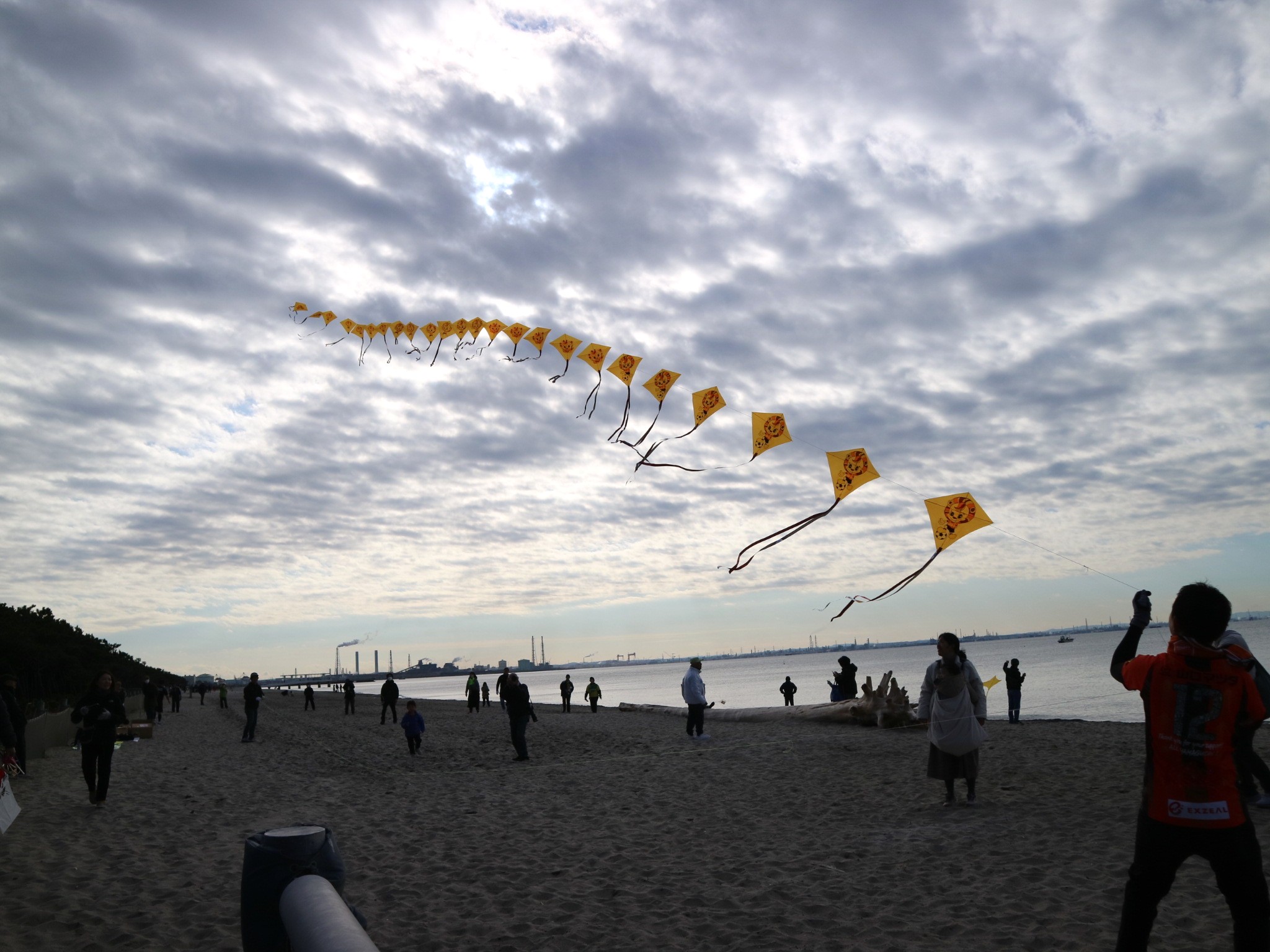 半世紀続く歴史ある行事だけあって、地元では海岸での凧揚げを楽しみにしている人も多い。「このイベントに先立って、12月上旬には親子凧づくり教室も行っています」と矢部さん。小さな子供連れの家族から熟練した人まで、老若男女問わず凧揚げを楽しむ姿がほほえましい。海岸では「凧の病院」も開設され、凧を揚げていて骨が壊れてしまったなんて場合でも、専門家が無料で凧の修理をしてくれたり相談に乗ってくれたりする。