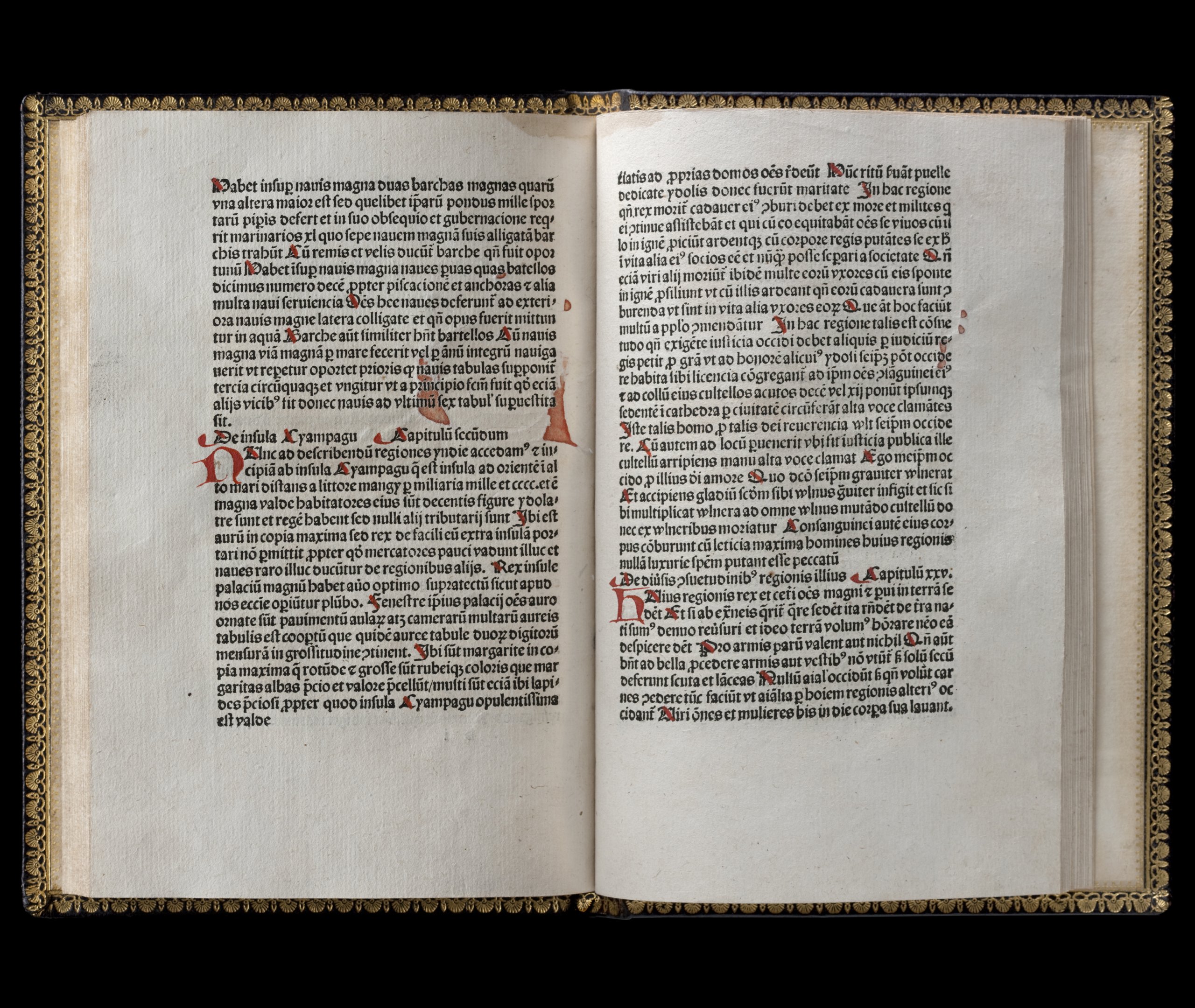 ヴェネツィアの商人マルコ・ポーロが父や叔父と東方を旅した際の見聞録をまとめた旅行記『東方見聞録』。『東洋文庫』には出版年・出版地・言語が異なる80種類もの『東方見聞録』が収蔵されており、刊本のコレクションとしては世界最大という。黄金や宝石を豊富に産出する東方の島「ジパング」が紹介され、人々を大いに刺激し、大航海時代の幕開けに影響を与えた書の記述に改めて触れることができる。