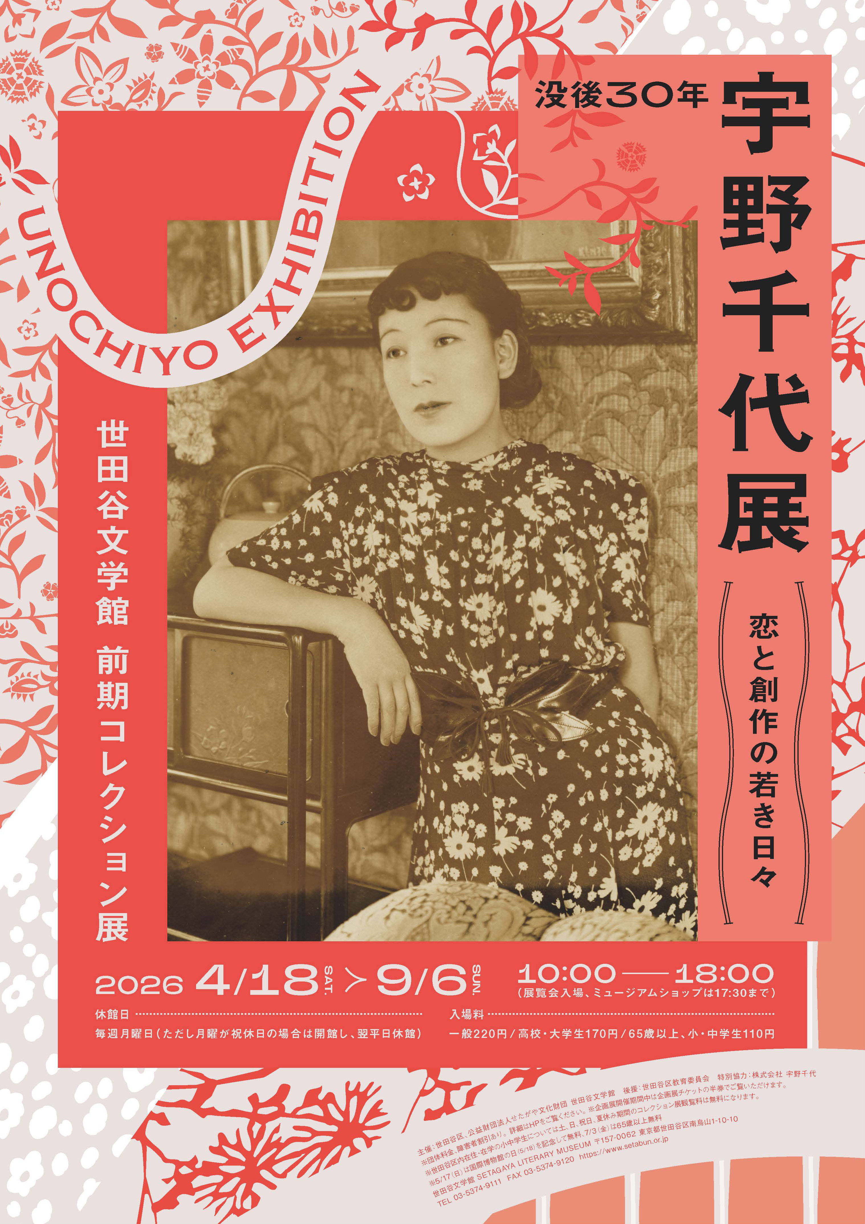 2023年度に世田谷文学館に寄贈された宇野千代旧蔵の新資料を前期・後期に分け、年間を通して紹介する本展。宇野の岩国での少女時代から「おはん」の連載が始まる50歳ごろまでの資料を中心に展示される前期と、1947年から1996年までの後半生を紹介する後期にわけて展示する。