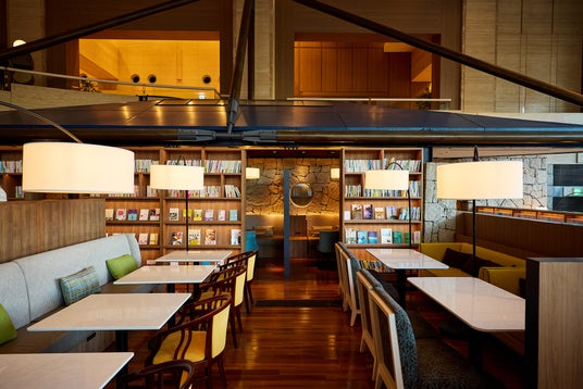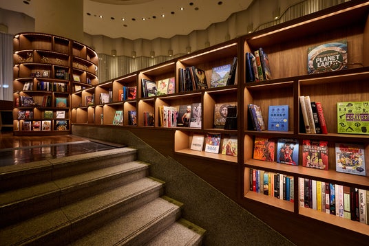 ラウンジは大きな窓から差し込む柔らかな自然光が、ゆったりとした空間を優しく包み込み、温かみのあるインテリアとスタイリッシュなデザインが、都会の喧騒を忘れさせてくれる特別な空間です。日本語・英語・中国語の3言語で展開された25,000冊のコミックや書籍を取り揃え、迷路のように立ち並ぶブックシェルフが知的好奇心を刺激する空間を演出します。