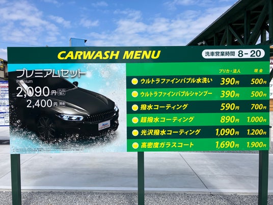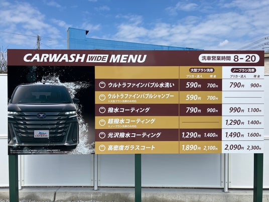 オープンを記念して、ご紹介しました幅広洗車機(CARWASH WIDE)の洗車価格を