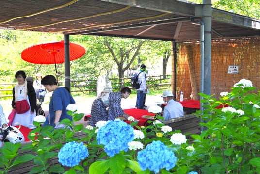 アジサイを眺めながら、お抹茶と和菓子をお楽しみいただける『野点(のだて)』を開催します。