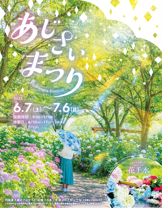 香川県仲多度郡まんのう町にある国営讃岐まんのう公園にて、6月7日(土)~7月6日(日)の30日間、40品種2万本のあじさいの見頃に合わせて、梅雨時期のお出かけが楽しくなる各種イベントを開催します。