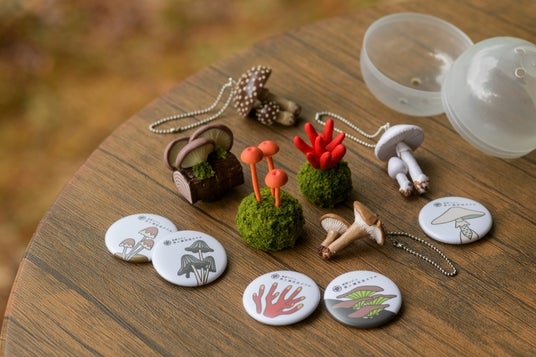 宿泊期間中に、奥入瀬渓流で見つけた毒きのこを「#毒きのこさんぽ」「#奥入瀬渓流ホテル」「#星野リゾート」をつけてInstagramに投稿し、投稿した画面をスタッフに提示した方はもれなく、毒きのこをモチーフにしたオリジナルのカプセルトイを回せます。「毒きのこガチャ」に入っているのは、奥入瀬渓流の森に生息する代表的な毒きのこをデザインした、オリジナル缶バッジやフィギュアです。鮮やかな赤色が特徴のカエンタケの缶バッジや、暗い場所でぼんやり光るツキヨタケフィギュアなど、個性豊かな毒きのこを表現したデザインです。オリジナルグッズを持ち帰ることで、旅行後も自宅で毒きのこを愛でることができます。
