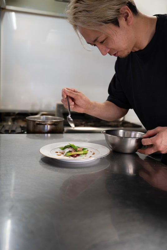 日本海に面した港町、新潟県寺泊。2種の源泉をもつ寺泊温泉『北新館』の女将が「これまでの旅館料理から脱却しよう」とアートなひと皿に思いを込める。