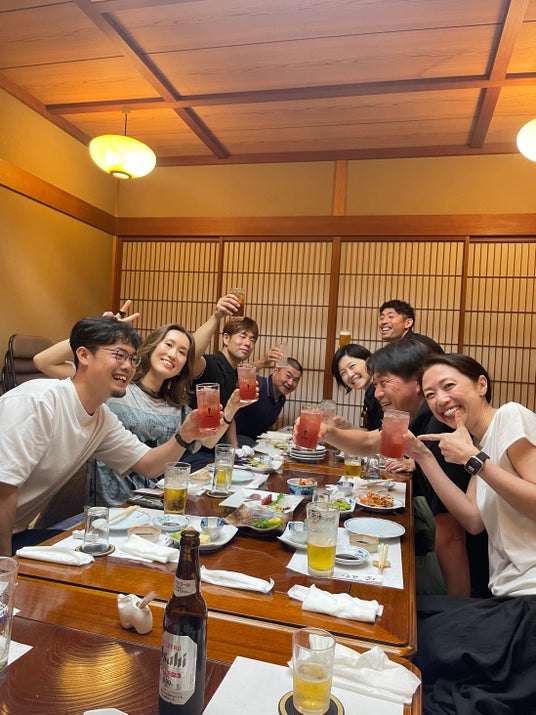 2024年のヤマモモ収穫ボランティアさんたちとの懇親会(地元の飲食店にて山桃酎ハイで乾杯)