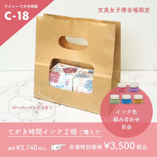 会場限定のお得な「てがき時間インク」セットのほか、限定ノベルティをプレゼント