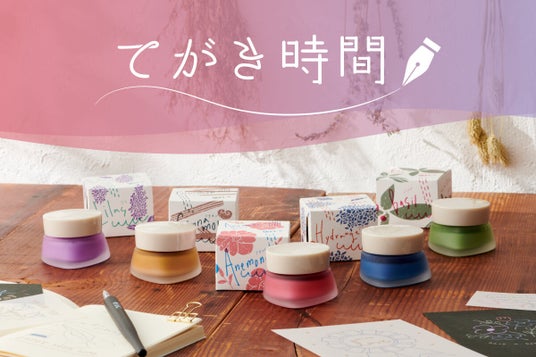 「てがき時間」は、手帳や手紙、イラストなどを書く(描く)シーンで、気軽にインクやつけペンを使って過ごす時間を楽しんでいただく機会を提案する文具シリーズです。