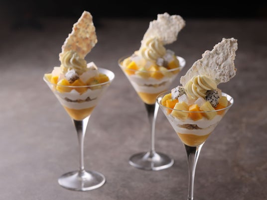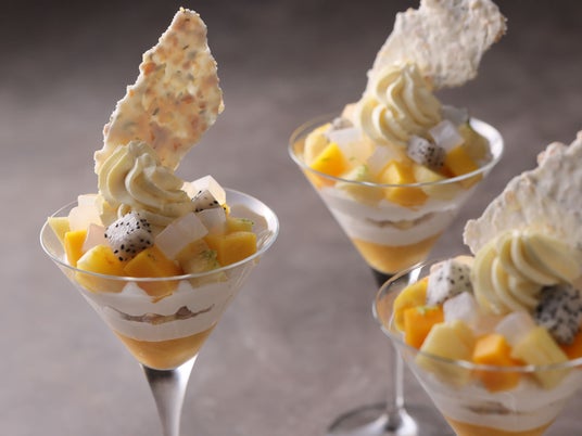 旬のマンゴーやパイナップルを贅沢に使用した大人のご褒美パフェ~夏の夜を彩る色合い華やかなカクテル3種も提供~