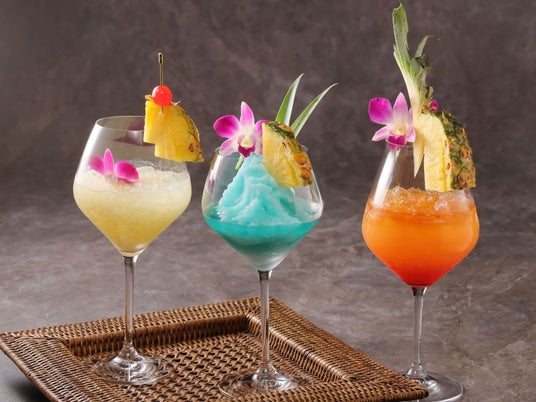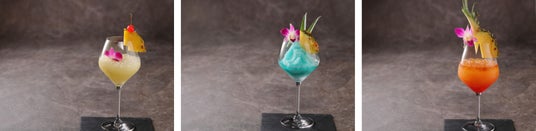 酸っぱいパイナップルとココナツ香る「ピニャコラーダ」。爽やかな甘みが特徴のトロピカルカクテルの女王「マイタイ」。定番の「ブルーハワイ」は涼やかなフローズンカクテルに仕立てました。