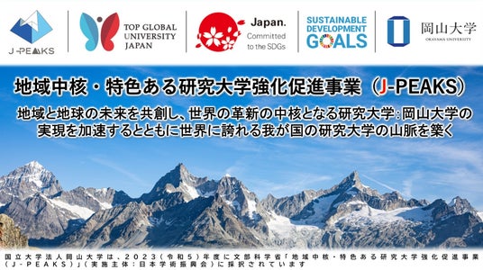 - 岡山大学 文部科学省「地域中核・特色ある研究大学強化促進事業(J-PEAKS)」に採択~地域と地球の未来を共創し、世界の革新の中核となる研究大学:岡山大学の実現を加速とともに世界に誇れる我が国の研究大学の山脈を築く~