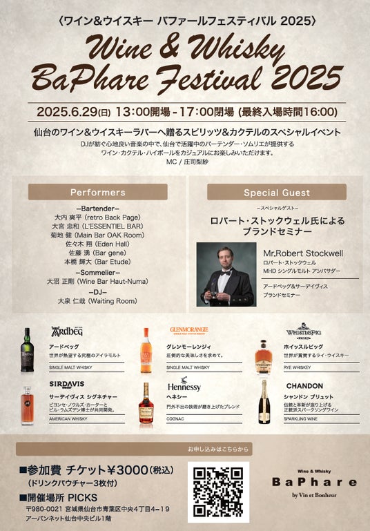自然派ワインと希少なウイスキーを取り揃える仙台のリカーショップ『BaPhare』が、スピリッツ&カクテルを楽しめる総合イベント『BaPhare Festival 2025』を初開催します。