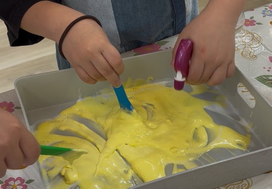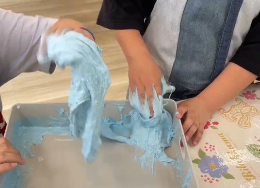 子どもたちが大好きなスライムを、ホウ砂と洗濯のり、そして泡ハンドソープを使って作ります。触って楽しく、見てきれい、ぷるぷるの感触、ひんやり感、五感で楽しむ自由な探究を体験します。