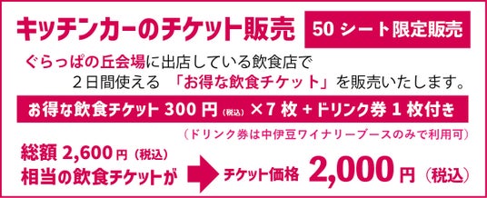 ◆お得な飲食チケット:ぐらっぱの丘会場に出店しているキッチンカーなどの飲食店で使えるお得な