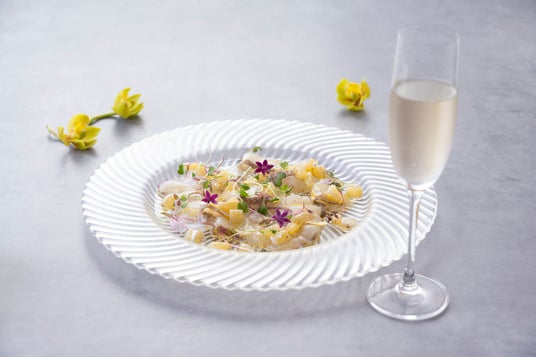 マリアージュセット& スペシャルディナー】イベント限定メニューとして、伊豆スパークリングワイン爽輝(グラス)と鯛のマリアージュをご用意いたします。また、特別営業のディナーでは、シェフ特製のコース料理をご堪能いただけます。